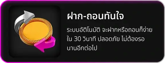 ระบบฝาก-ถอนของเรารองรับธนาคารชั้นนำทุกแห่งในประเทศไทย รวมถึง True Wallet ด้วย เพียงแค่คุณทำตามขั้นตอนง่ายๆ ในการฝากเงิน ระบบจะตรวจสอบและเครดิตเงินเข้าบัญชีของคุณโดยอัตโนมัติ ส่วนการถอนเงินก็เช่นกัน เมื่อคุณกดถอน ระบบจะประมวลผลและโอนเงินเข้าบัญชีที่คุณระบุไว้อย่างรวดเร็ว