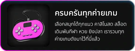 ตอบ : - มีเกมสล็อตออนไลน์มากกว่า 1,000 เกม - คาสิโนสดถ่ายทอดจากบาคาร่า รูเล็ต และเกมไพ่ - พนันกีฬาครบทุกลีกดัง - เกมยิงปลาและเกมโต๊ะต่างๆ - หวยออนไลน์ครบทุกงวด